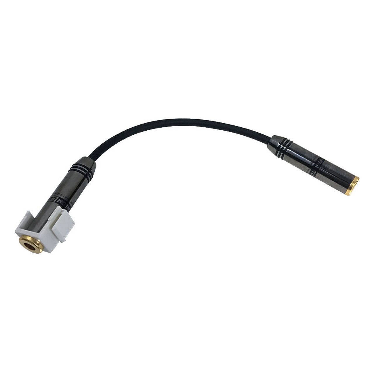 This keystone adapter consists of a 1/4 inch (TRS) female on one end and a 1/4 inch (TRS) female on the other end. It is typically used to snap into a standard keystone opening and connect a 1/4 inch (TRS) cable coming from within the wall to a 1/4 inch (TRS) cable going to a source.