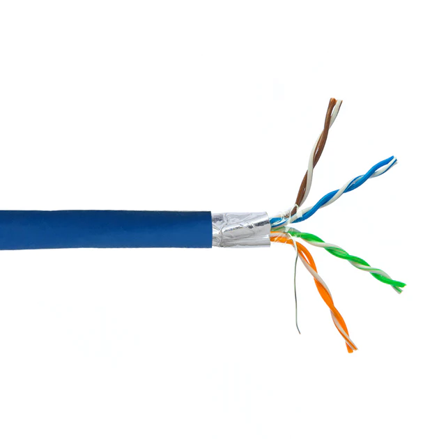 This bulk riser rated Cat6 cable is 1000 feet in length and consists of 4 pairs of 24AWG stranded wires with an overall foil shield. It is typically used to manufacture Cat6 shielded patch cables and terminated with shielded RJ45 plugs.