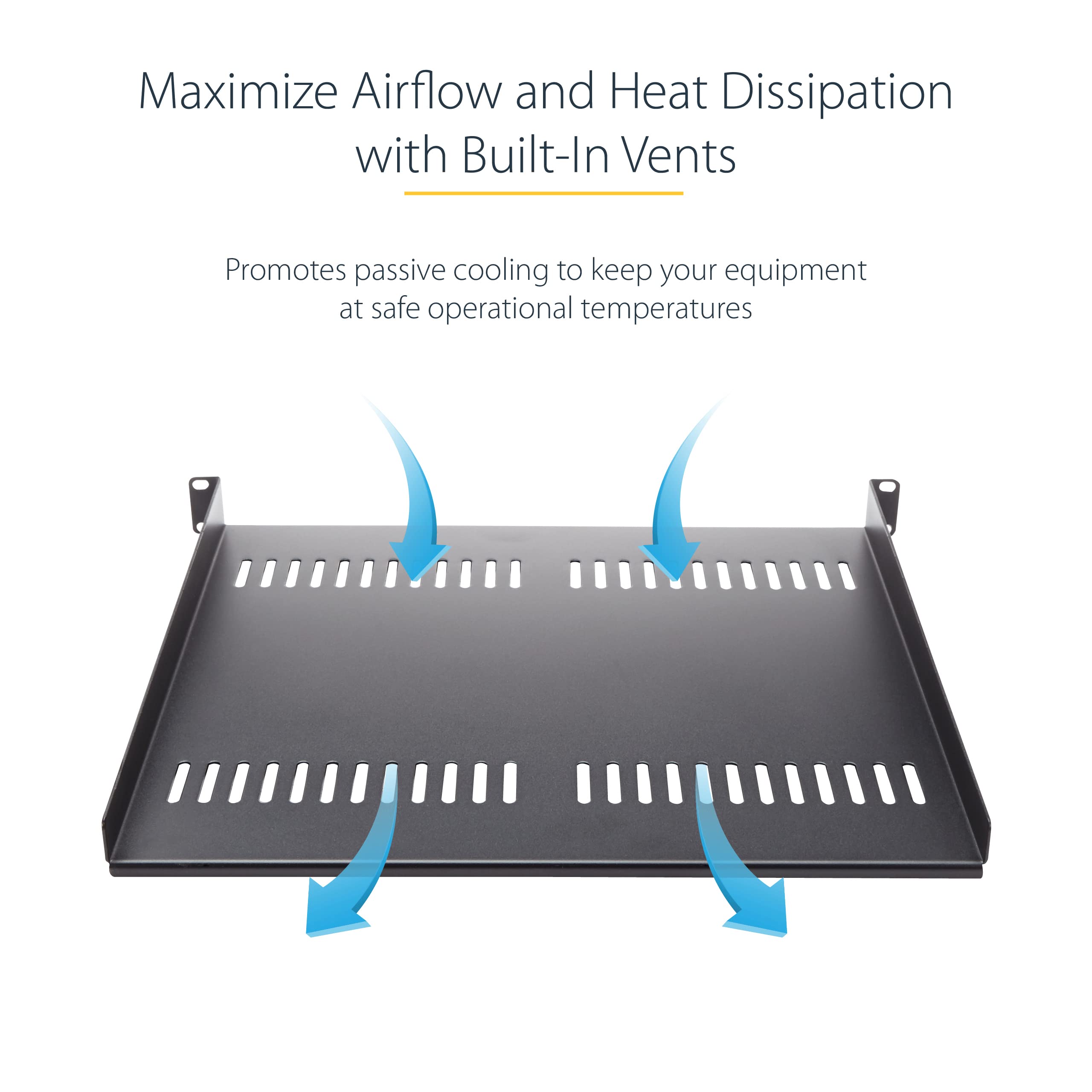 - MAXIMIZE VENTILIATION: The vented shelf plate on the cantilever rack shelf ensures consistent airflow to effectively dissipate heat on servers; it also works great to keep your computer and AV equipment cool in your home, studio, or office space