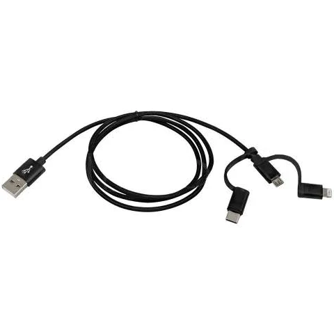 This cable consists of a USB A male on one end and a Micro B male on the other. The cable comes with an Apple ® Lightning 8 pin male to Micro B female adapter as well as a Type-C male Micro B female adapter which are tethered to the cable. This multi-use cable can be used to connect to your computer or USB charger to charge and/or sync any mobile device. This cable is also Apple MFi certified which ensures that it is premium quality and fully compatible with all Apple devices.