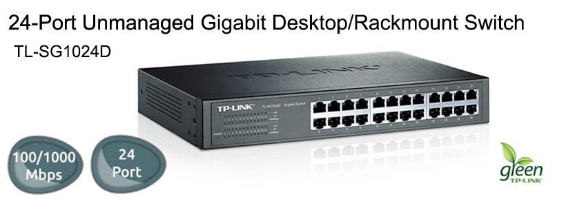 The TL-SG1024D Gigabit Ethernet Switch provides you with a high-performance, low-cost, easy-to-use, seamless and standard upgrade to improve old network to 1000Mbps network. All 24 ports support auto MDI/MDIX, no need to worry about the cable type, simply plug and play. Moreover, with the innovative energy-efficient technology, the TL-SG1024D can save power consumption and 80% of the packaging material can be recycled, making it an eco-friendly solution for your business network.