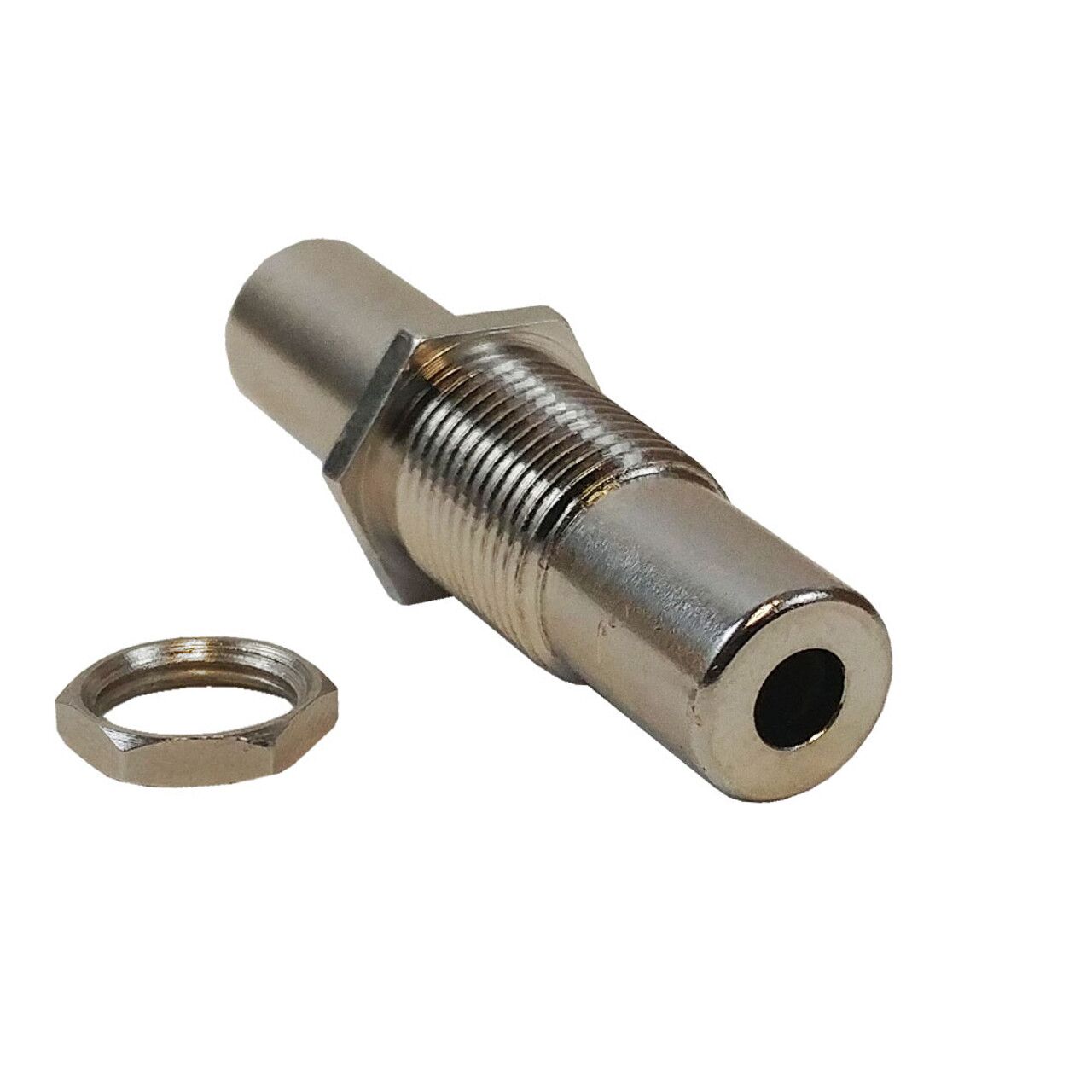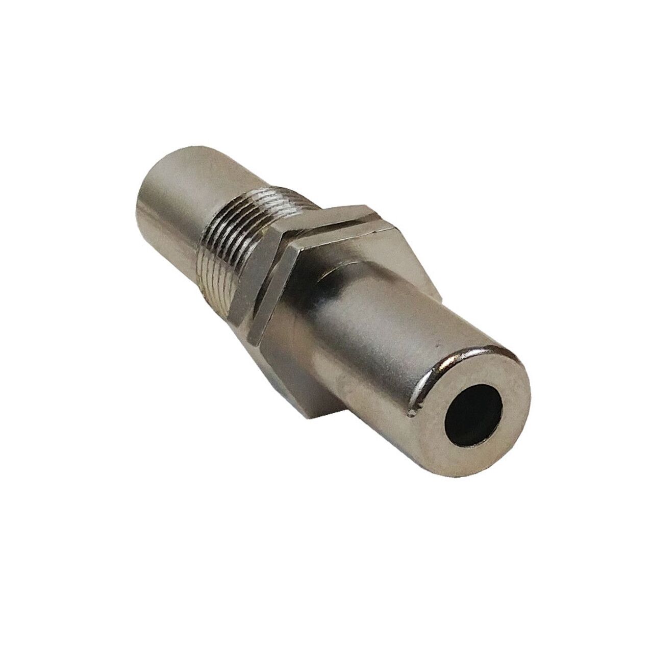 This stainless steel wall plate adapter consists of a 3.5mm stereo female on both ends. It can be mounted in a 3/8 inch hole such as on one of our stainless steel wall plates and is typically used to join two 3.5mm stereo male cables.