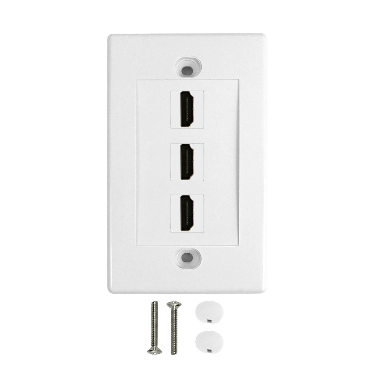 This wall plate kit consists of a wall plate, and 3 x HDMI female to female insert. It is compatible with standard North American electrical openings, data clips or surface mount boxes.