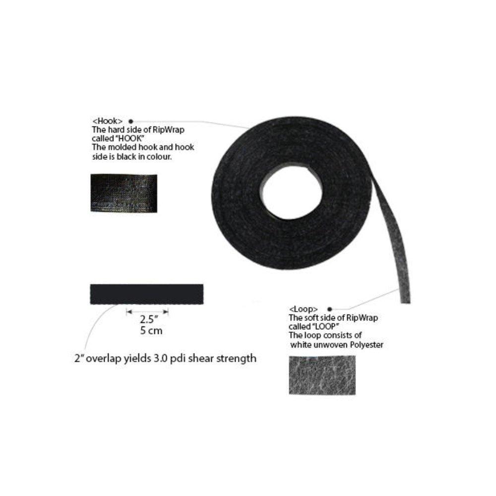 This roll of Rip Wrap is 30 feet in length and is black in color. It is a multi-purpose strap for organizing and handling low voltage cables. The 100% polyethylene hook attaches onto the 100% polyester loop creating a tight wrap. The wrap is ideal for outdoor installations. Made in the USA using Velcro® brand hook and loop touch fasteners material.