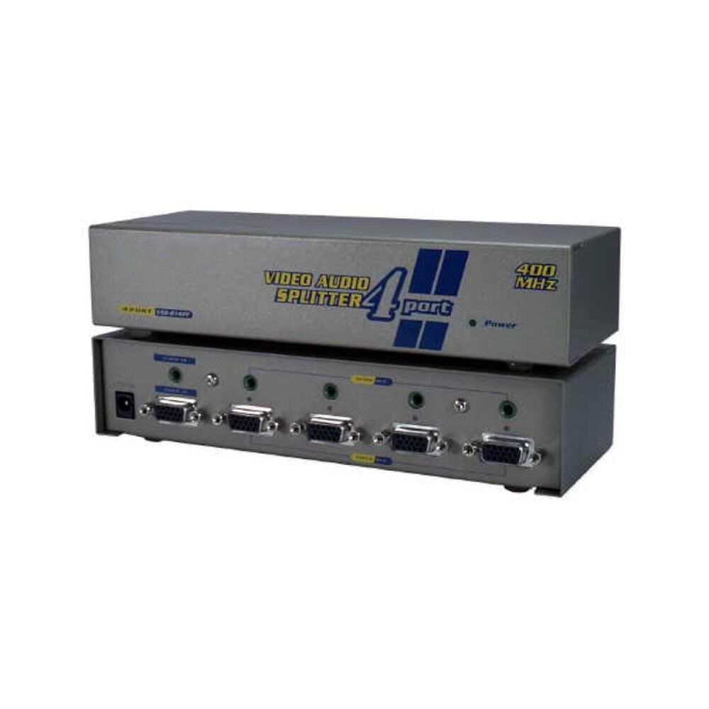 This VGA with audio splitter enables you to display one VGA source on four VGA displays simultaneously. It is typically used to split a PC’s VGA video output to four VGA monitors or projectors.