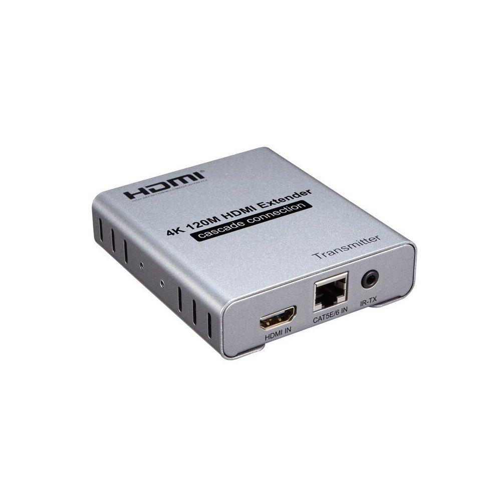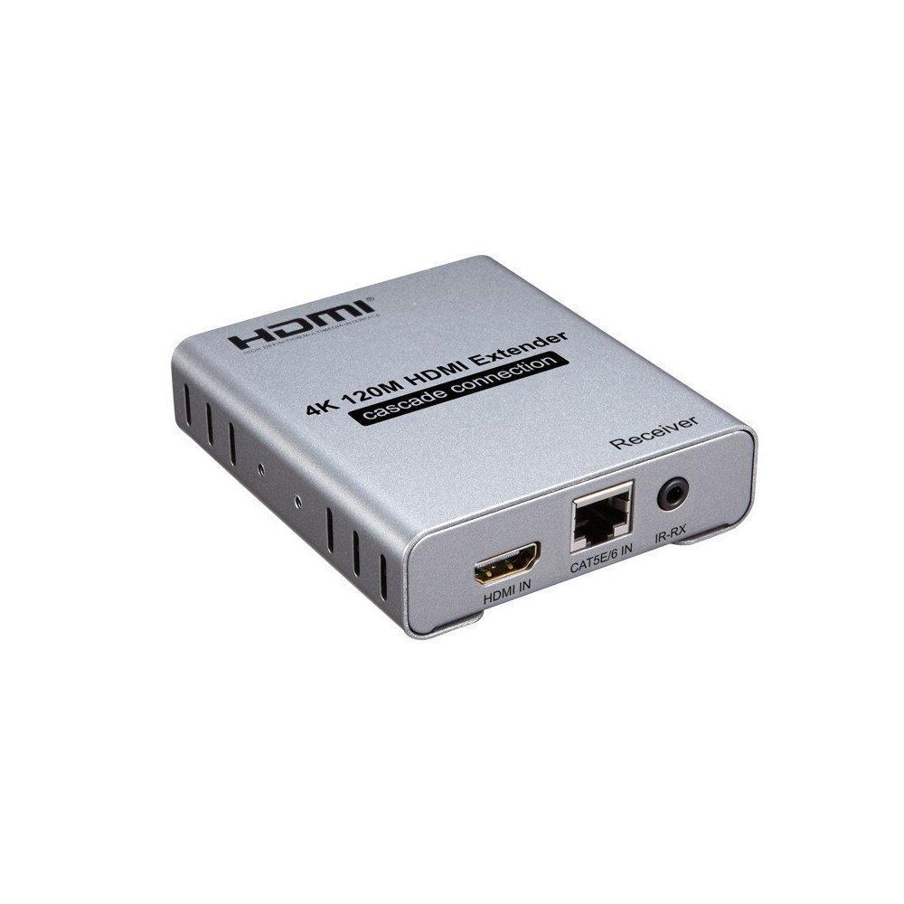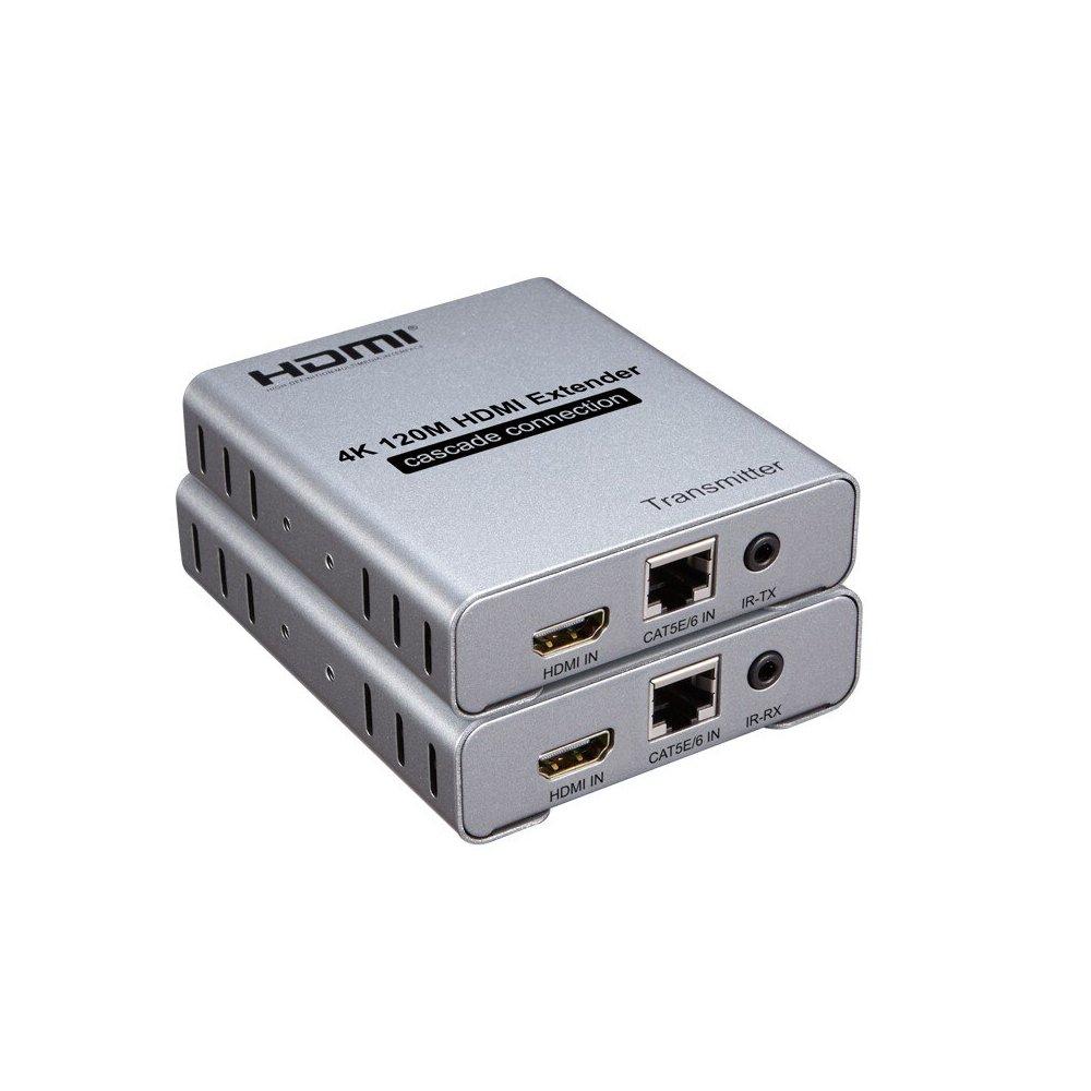 The 4K 120M HDMI extender uses one single cat-5E or cat-6(recommended) cable instead of HDMI cable, you can extend the HDMI1.3-1080P signal to 120 meters or HDMI2.0 4K@60Hz to 60 meters. The purpose of the extender is to achieves long-distance signal transmission with low-cost wires.