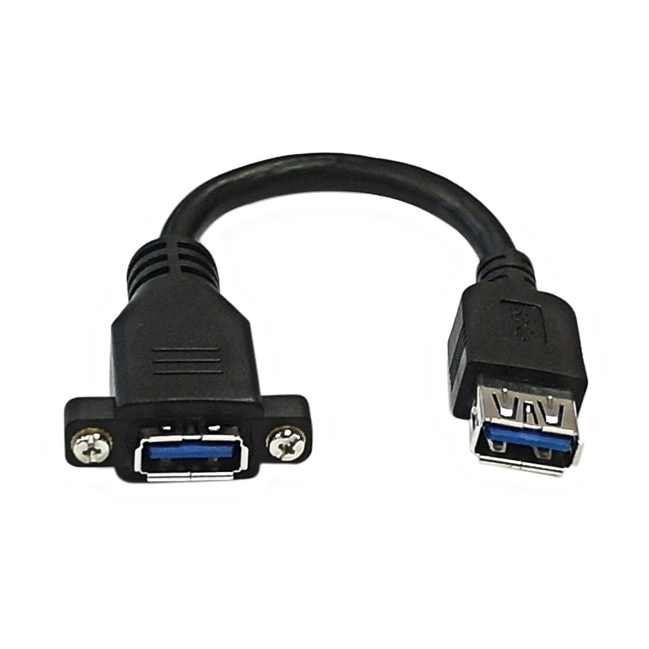 This stainless steel wall plate adapter consists of a USB 3.0 Type A female on both ends. It can be mounted in a DB9 size cutout such as on one of our stainless steel wall plates, and is typically used to join two USB Type A male cables.