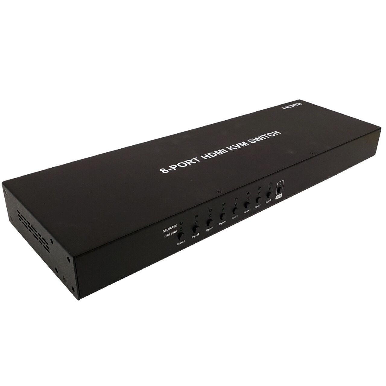 This KVM switch enables you to control eight PCs with one USB keyboard, USB mouse and HDMI monitor.