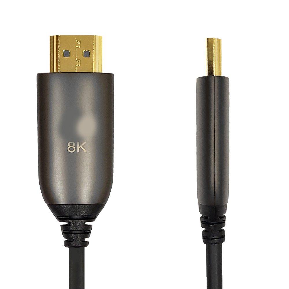 This active optical High-Speed HDMI® cable is plenum rated and consists of a HDMI male connector on both ends. The cable has a built in signal booster chipset which allows it to maintain a HDMI 2.1 signal over a thin cable at longer lengths with no signal loss. It is typically used to connect a HDMI source such as Blu-Ray players and PC’s to a HDTV or monitor and supports full 8K Ultra HD resolution and High Dynamic Range (HDR). The AOC cable also works with splitters, switches and other video sharing devices.