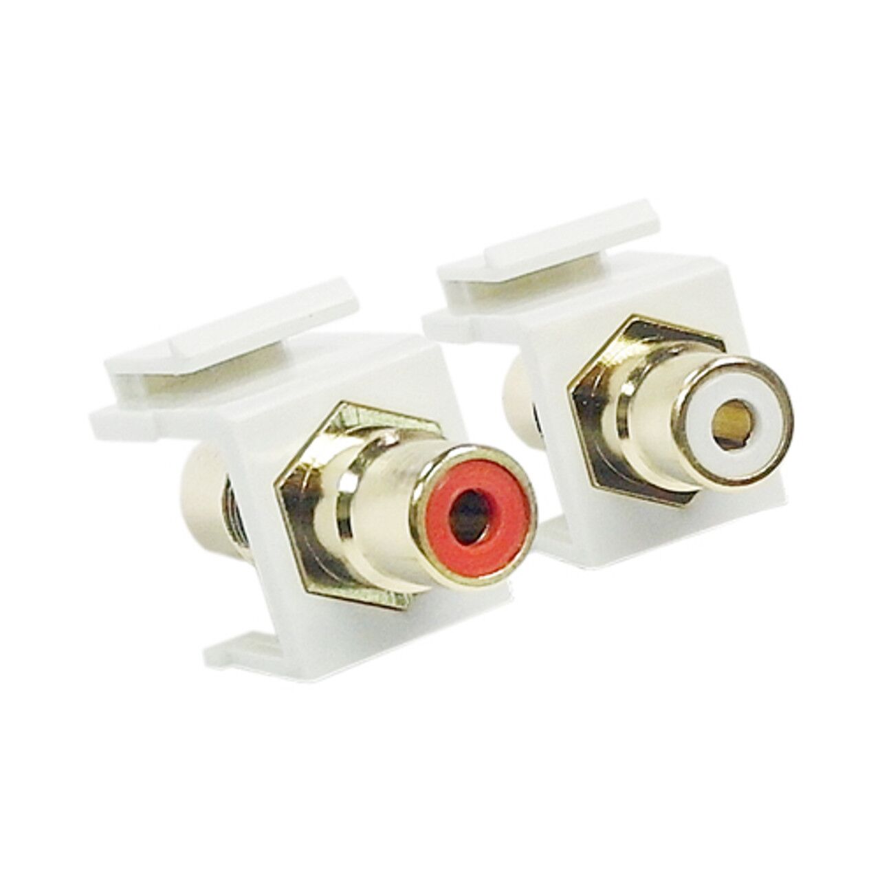 This keystone adapter consists of a RCA female on one end and a RCA female on the other end. It is typically used to snap into a standard keystone opening and connect a RCA cable coming from within the wall to a RCA cable going to a source or display. Sold in pairs and color coded.