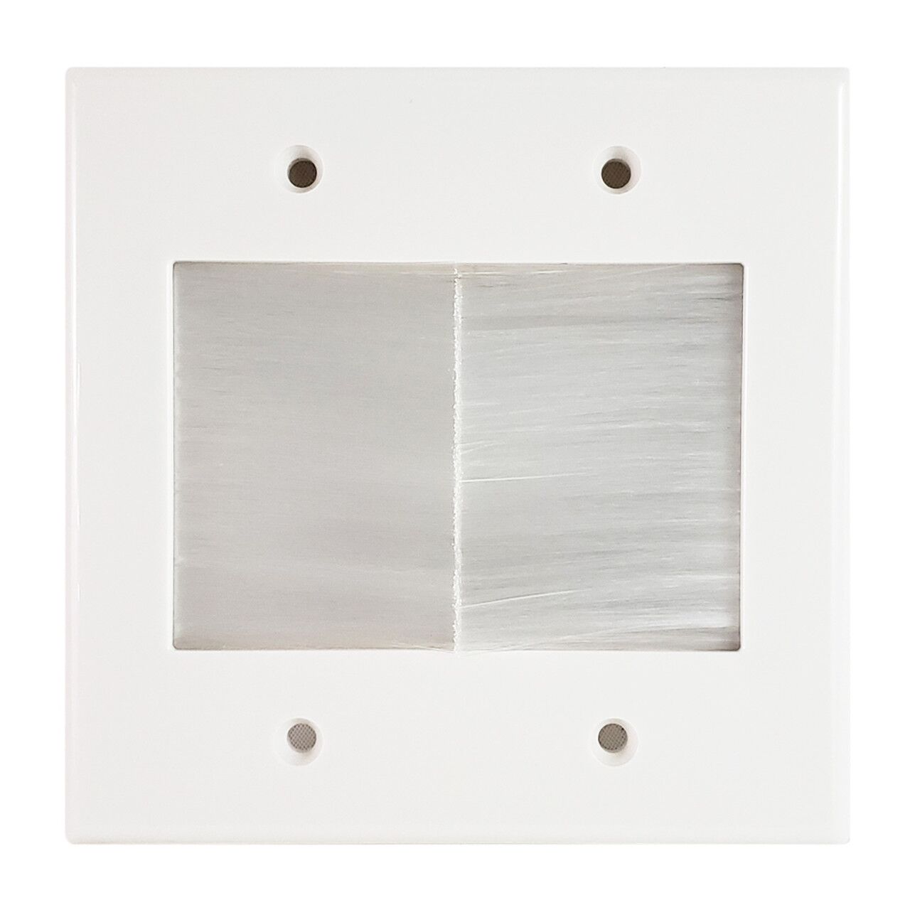 This double gang brush style wall plate consists of a cable pass-through opening.