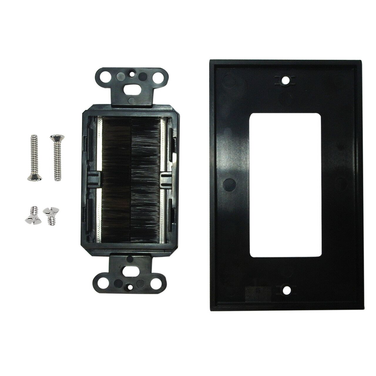 This single gang brush style wall plate consists of a cable pass-through opening.