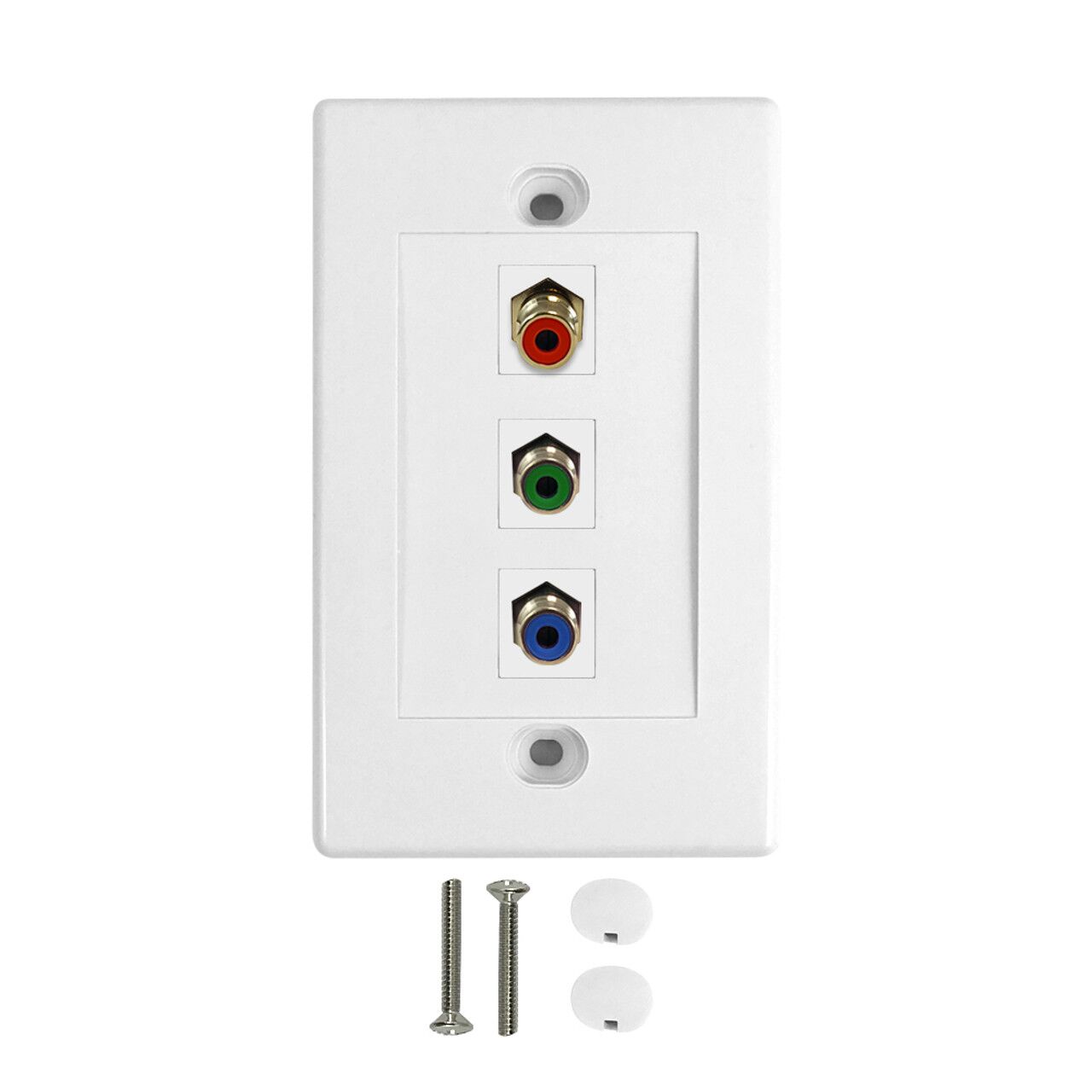This wall plate kit consists of a wall plate, and 3x Component (RGB) female to female inserts. It is compatible with standard North American electrical openings, data clips or surface mount boxes.