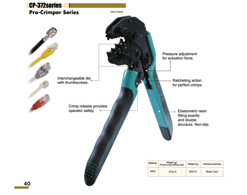This ratchet tool is designed to crimp 22-8 gauge heat shrink terminals. The design prevents the tool from cutting or puncturing the heat shrink portion of the terminals. Tool features a wider crimping surface to spread the crimping pressure to a larger area to prevent cutting of delicate shrink terminals. Also features a non-slip handle, quick release, pressure adjustment wheel, and four crimp zones clearly marked by color coding and wire size.