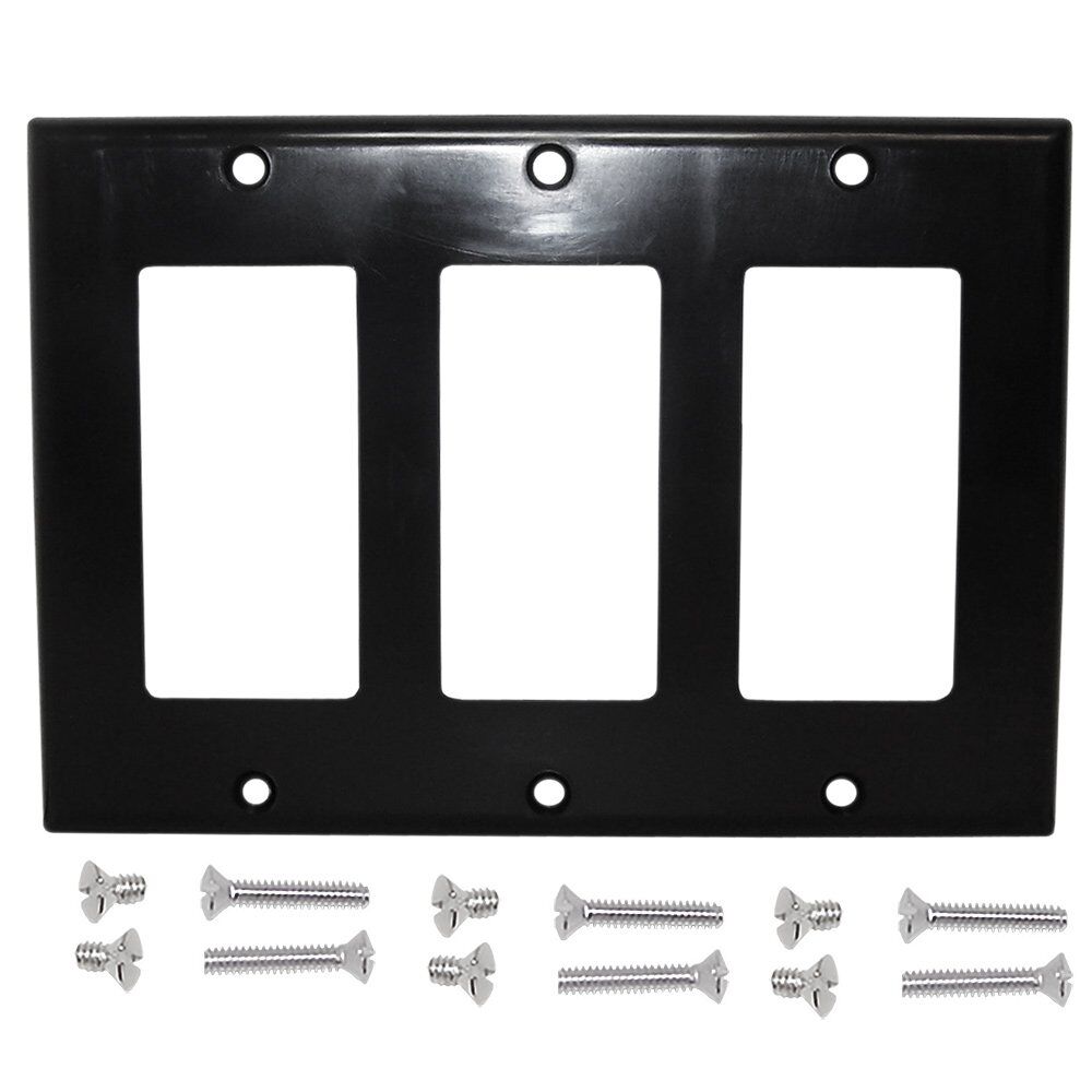 This triple gang decora wall plate cover fits over standard decora inserts.