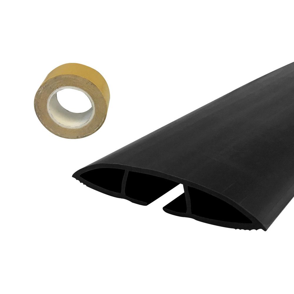 This Raceway product is a floor track cord cover that is six feet in length. It is primarily used to secure, protect and conceal all types of cabling in residential and commercial applications. Double sided adhesive tape is also included.