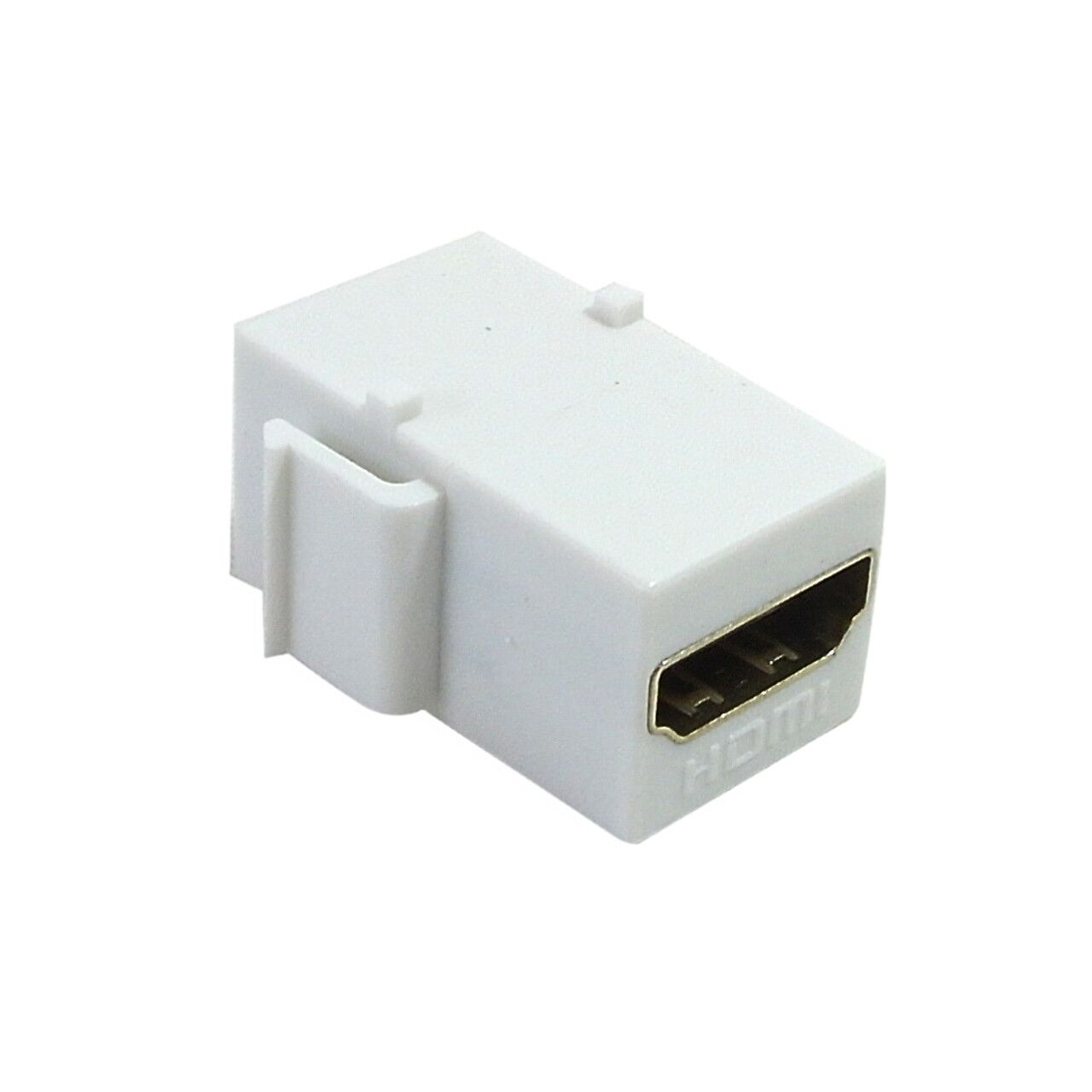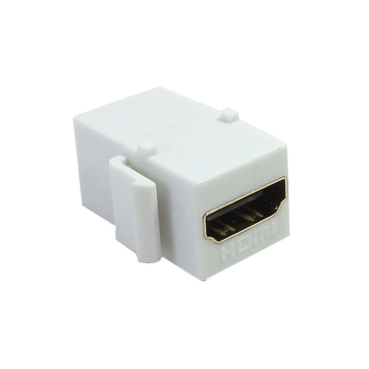 This keystone adapter consists of a HDMI female on one end and a HDMI female on the other end. It is typically used to snap into a standard keystone opening and connect a HDMI male cable coming from within the wall to a HDMI male cable going to a source.