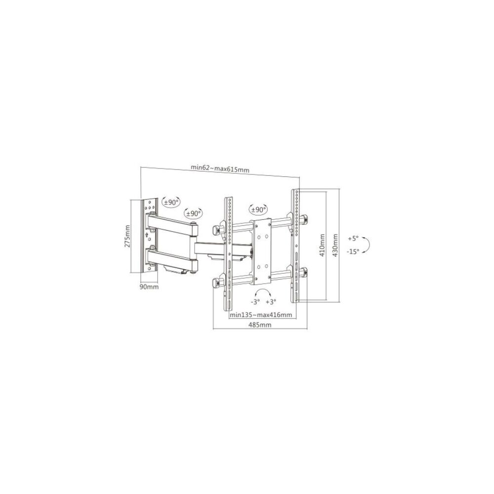 The new solid large full motion mount is constructed with high gauge steel that designed for most 32″-55″ flat panel TVs up to 50kg/110lbs. This mount allows you to have your flat panel TV tilted for glare control or optimum viewing angle, pulled out from the wall (615mm extension) and angled towards a separate viewing area. This pre-assembled arm comes complete with integrated cable management and decorative covers to ensure an elegant and tidy look.
