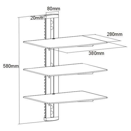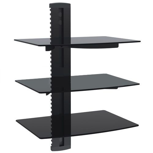 This triple shelf media player wall mount is designed to hold up to 18lbs of audio/video components.
