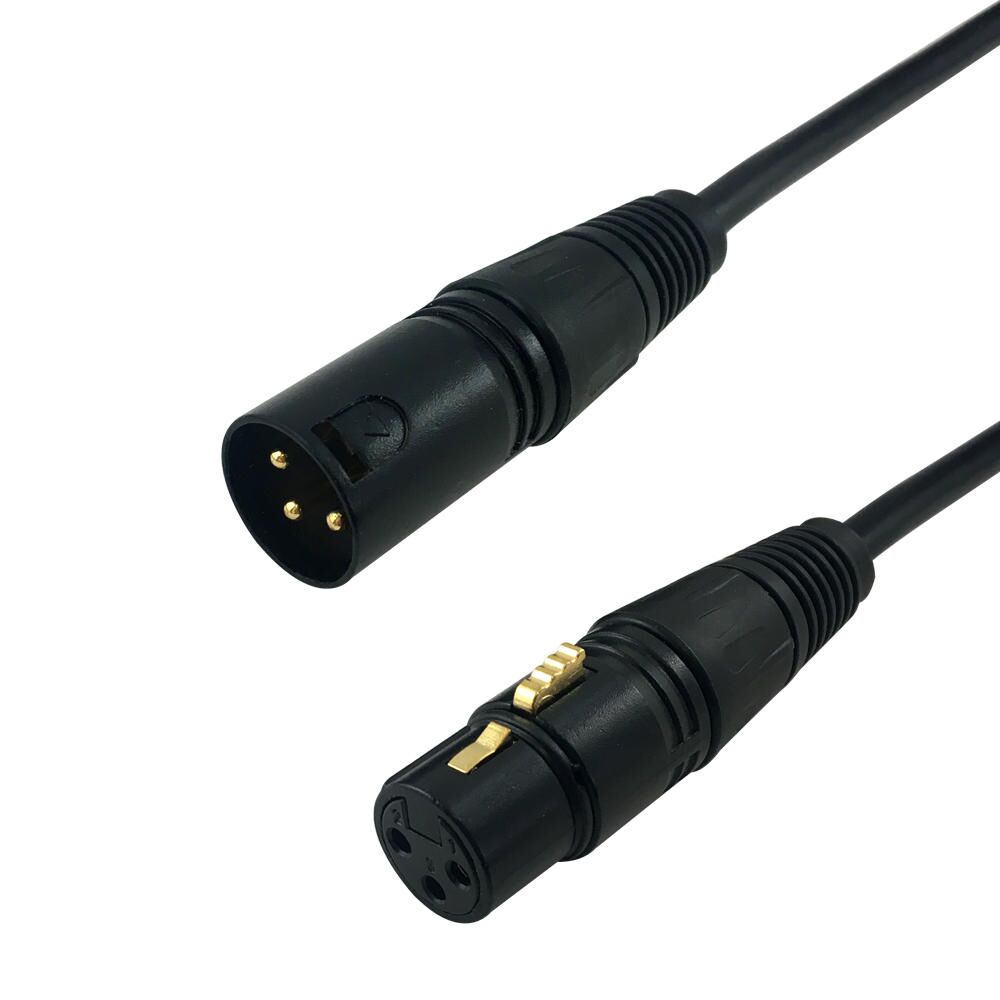 This premium stereo audio cable has a Mini-XLR male connection on one end and a Mini-XLR female connection on the other end. It is typically used to connect microphones to wireless audio devices or as a condenser microphone cable.