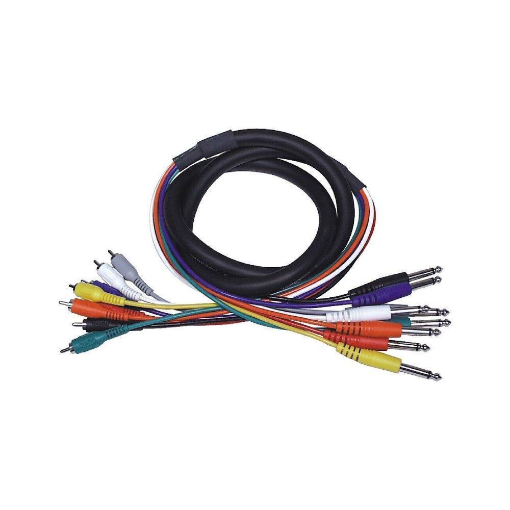 This audio snake cable has eight RCA male on one end and eight 1/4 inch TS males on the other. It is typically used to connect mixing consoles and patch bays.