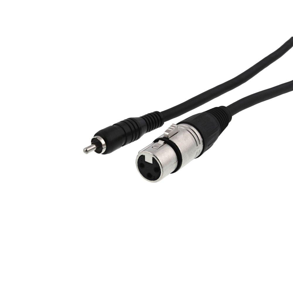 This premium stereo audio cable has a XLR female on one end and a RCA male unbalanced on the other. It is typically used to connect a speaker to a mixer on professional audio systems.