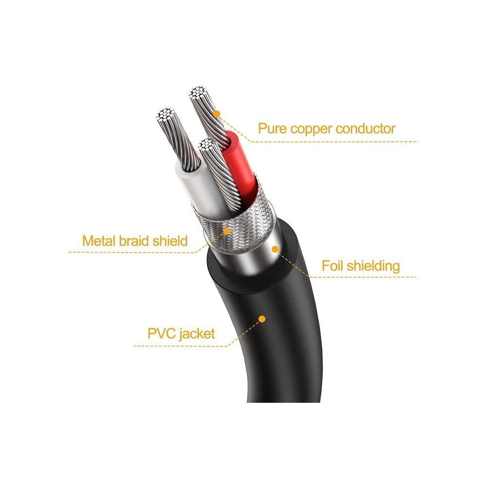- Braided shield surrounds center conductors for maximum EMI/RFI noise rejection therefore maintaining the cleanest signal possible