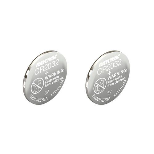 This lithium 3 volt coin cell battery is size CR2032. It is typically used in electronic devices and sold in packs of 2.