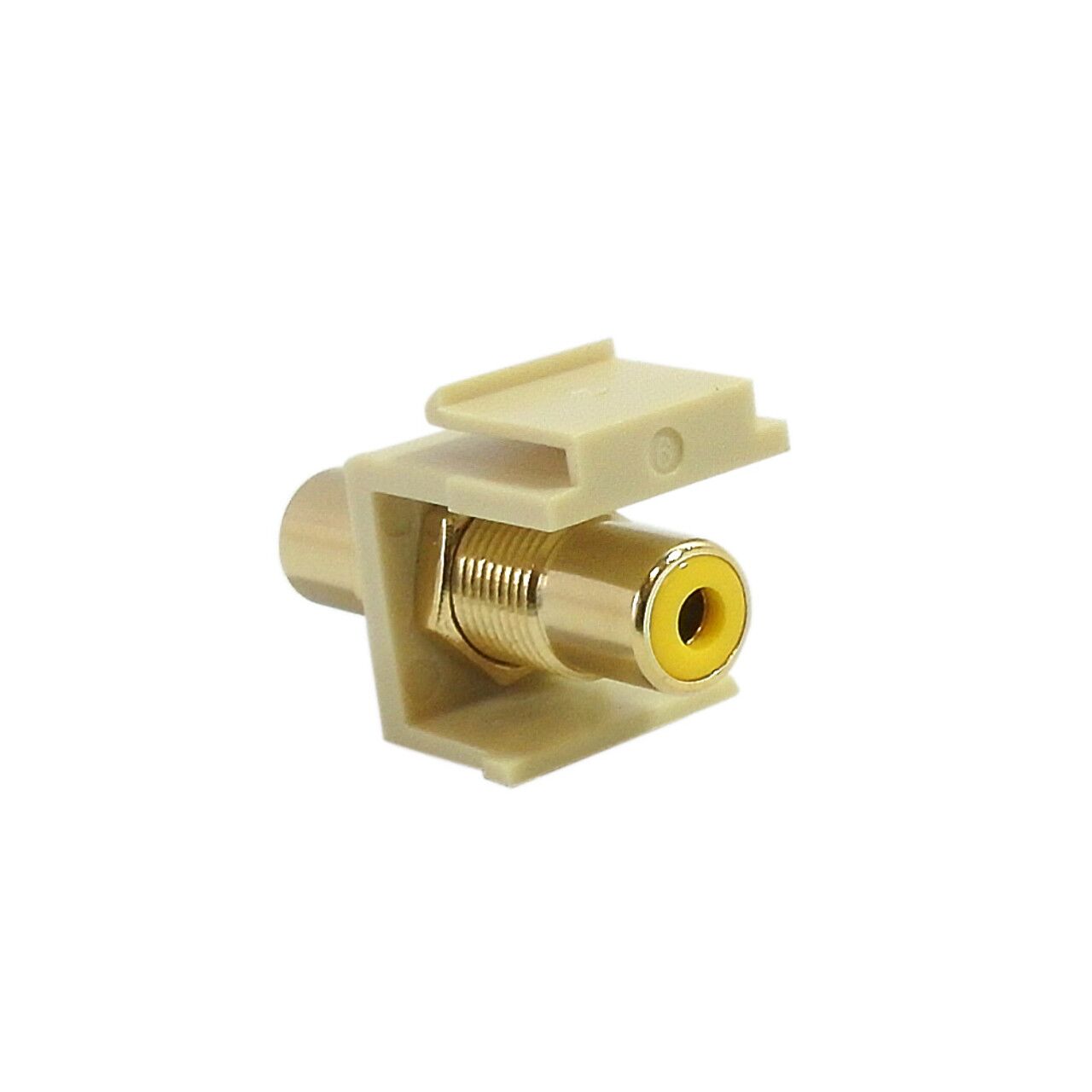 This keystone adapter consists of a RCA female on one end and a RCA female on the other end. It is typically used to snap into a standard keystone opening and connect a RCA cable coming from within the wall to a RCA cable going to a source.