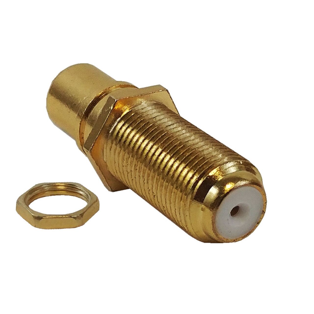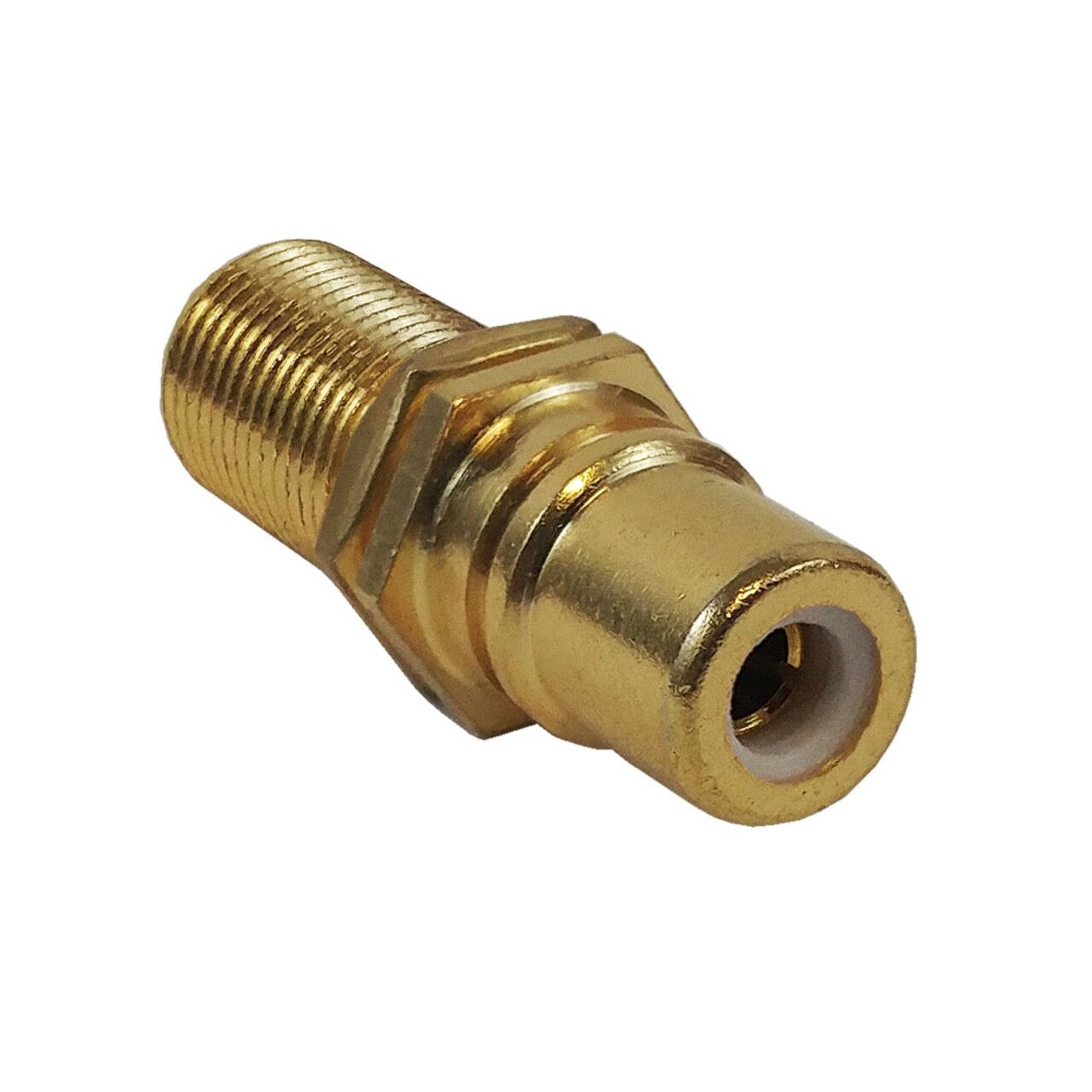 This stainless steel wall plate adapter consists of a F-Type female on one end and an RCA female on the other. It can be mounted in a 3/8 inch hole such as on one of our stainless steel wall plates and is typically used to join a F-Type male cable to a RCA male cable.