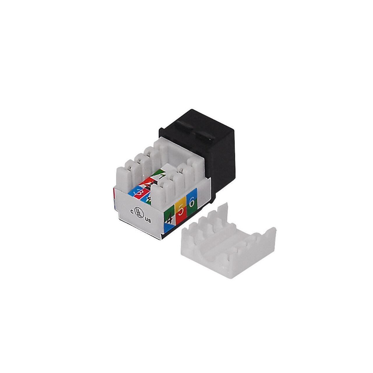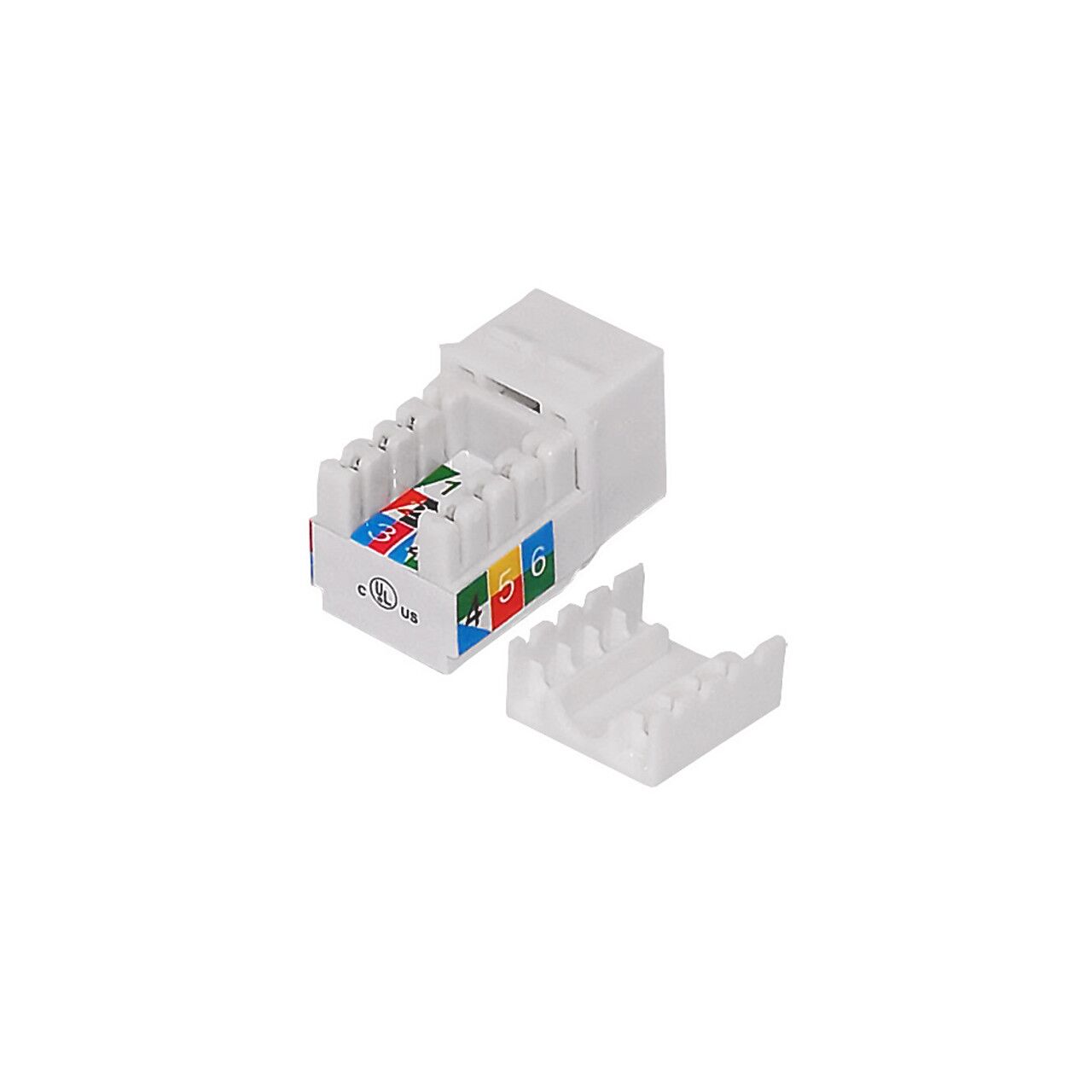 This keystone insert consists of a RJ12 Cat3 Slim Profile Jack female on one end and a standard 110 Punch-Down on the other end. It is typically used to fit into a standard keystone opening and connect a RJ12 Cat3 cable to terminate.