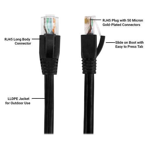 100% Pure CopperThis cables is manufactured using high quality pure bare copper to ensure optimal performance and longest lifetime. 50 Micron Gold Plated ConnectorsThis non-corrosive, thickest available gold plating delivers optimum conductivity and maintains a stable signal connection with little risk of getting damaged over time. Outdoor Rated CableIdeal for use in cable runs that are located above or below ground as premise wiring to connect network devices. |
