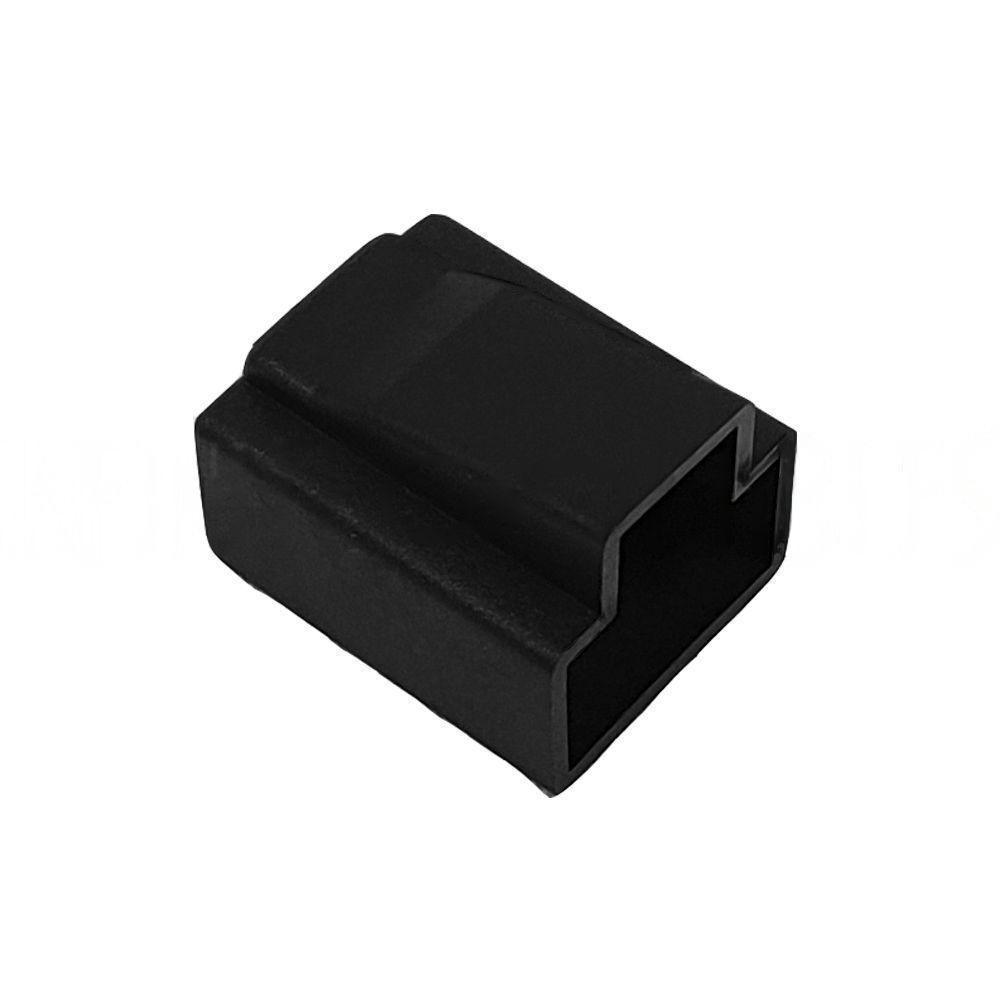 This dust cap fits RJ45 male plug. It is typically used to help keep contaminants off of RJ45 plugs.