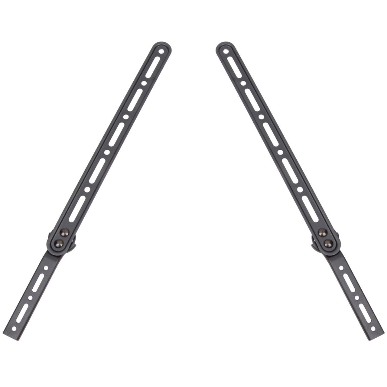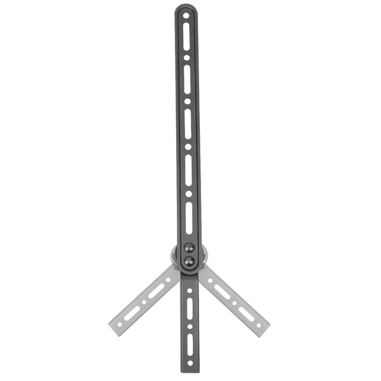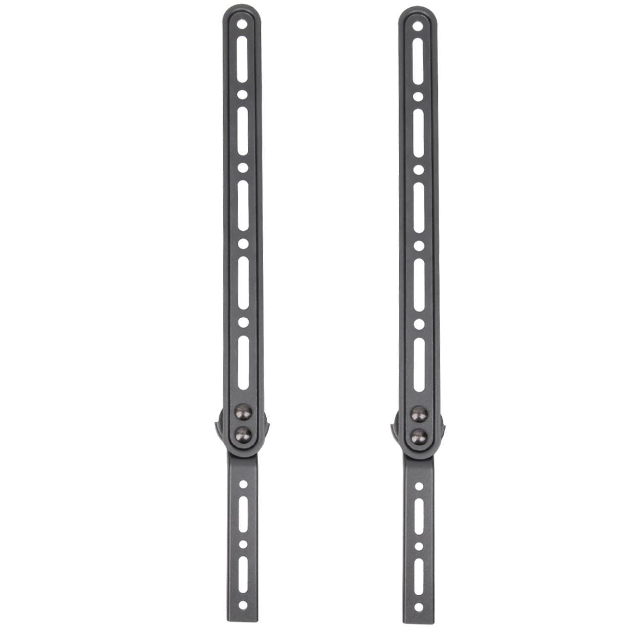 This sound bar bracket is designed to hold speakers up to 15kgs/33 lbs. It attaches to the back of the TV under the wall mount bracket and holds the sound bar in place.