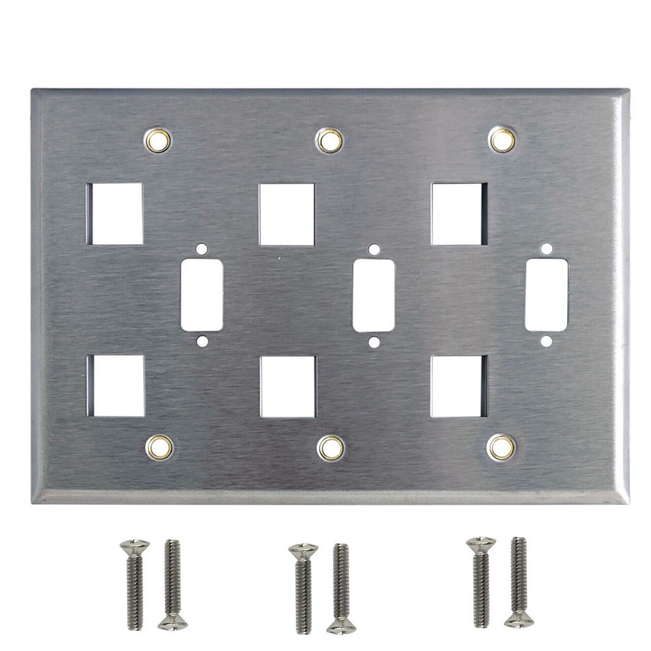 Triple Gang, 3-Port DB9 Size Cutout, 6 x Keystone Stainless Steel Wall Plate