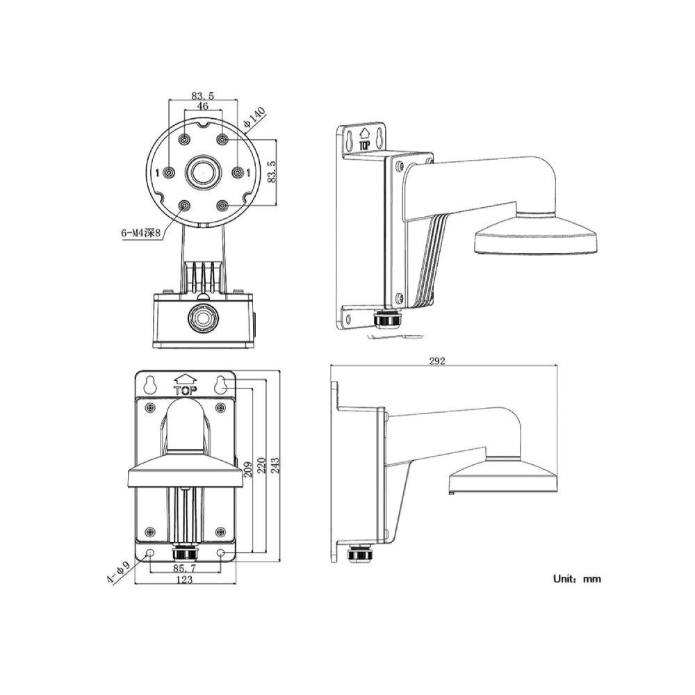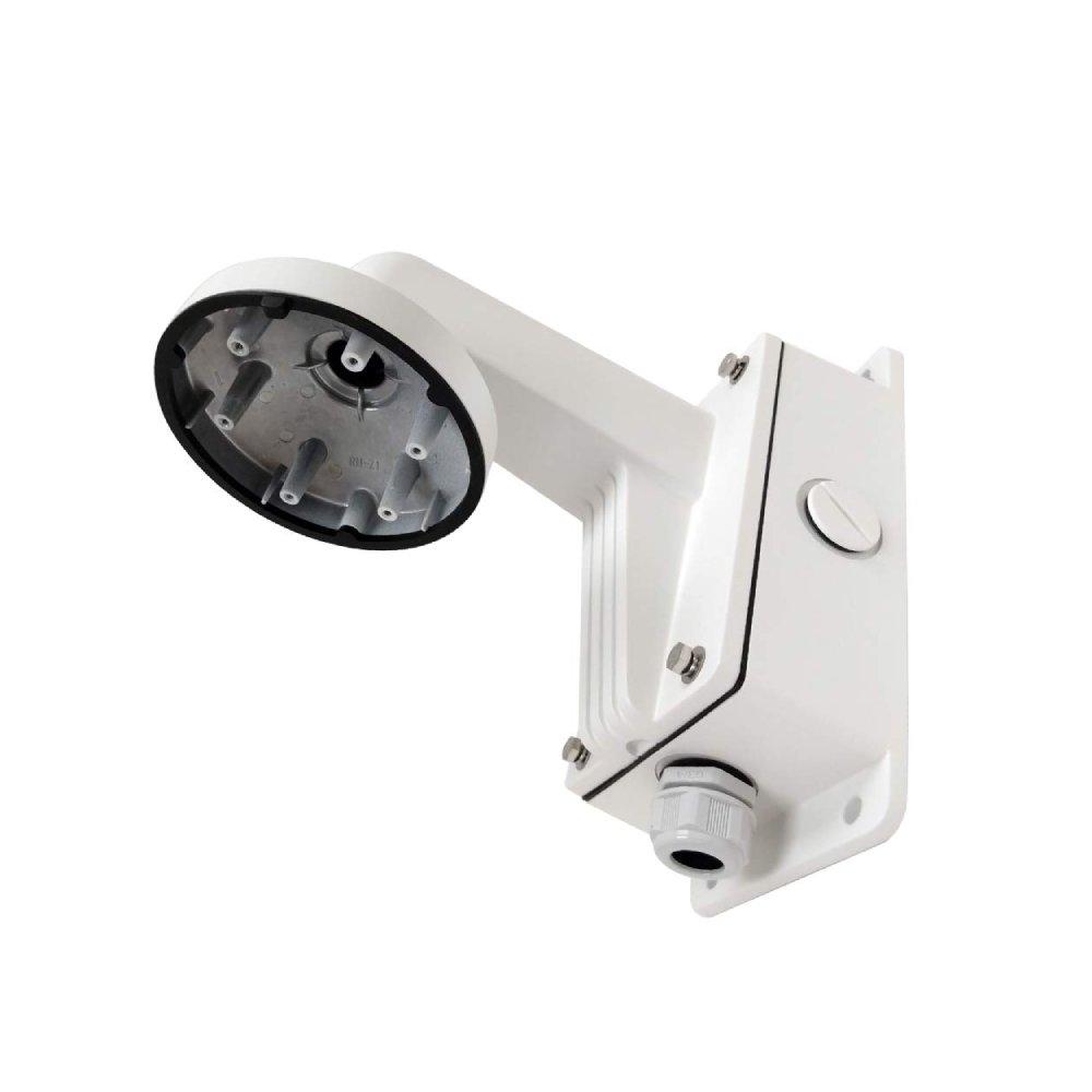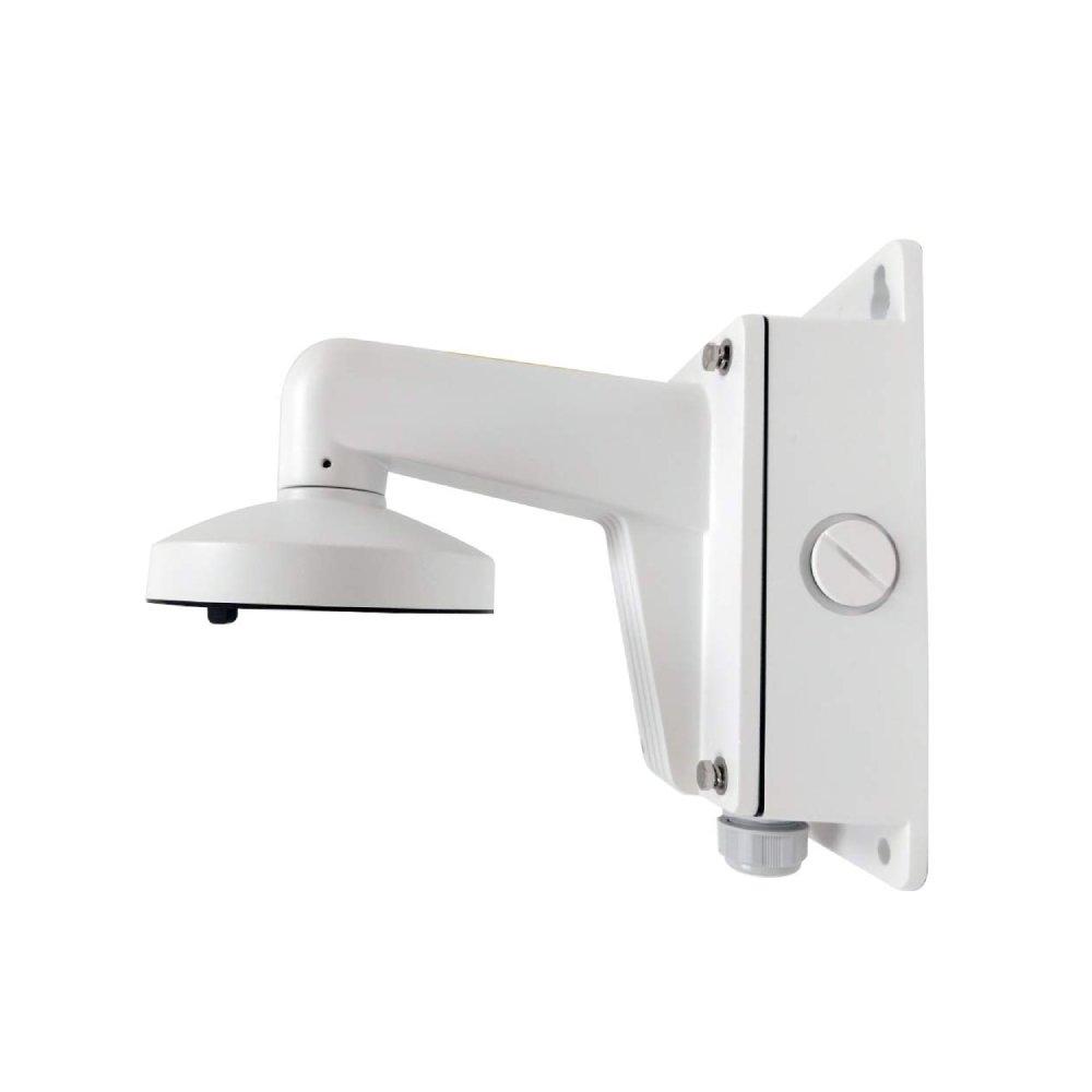 This wall mounting bracket with built in junction box is designed to hold a dome IP camera. It is constructed of treated aluminum alloy material for better protection against the elements in outdoor applications.